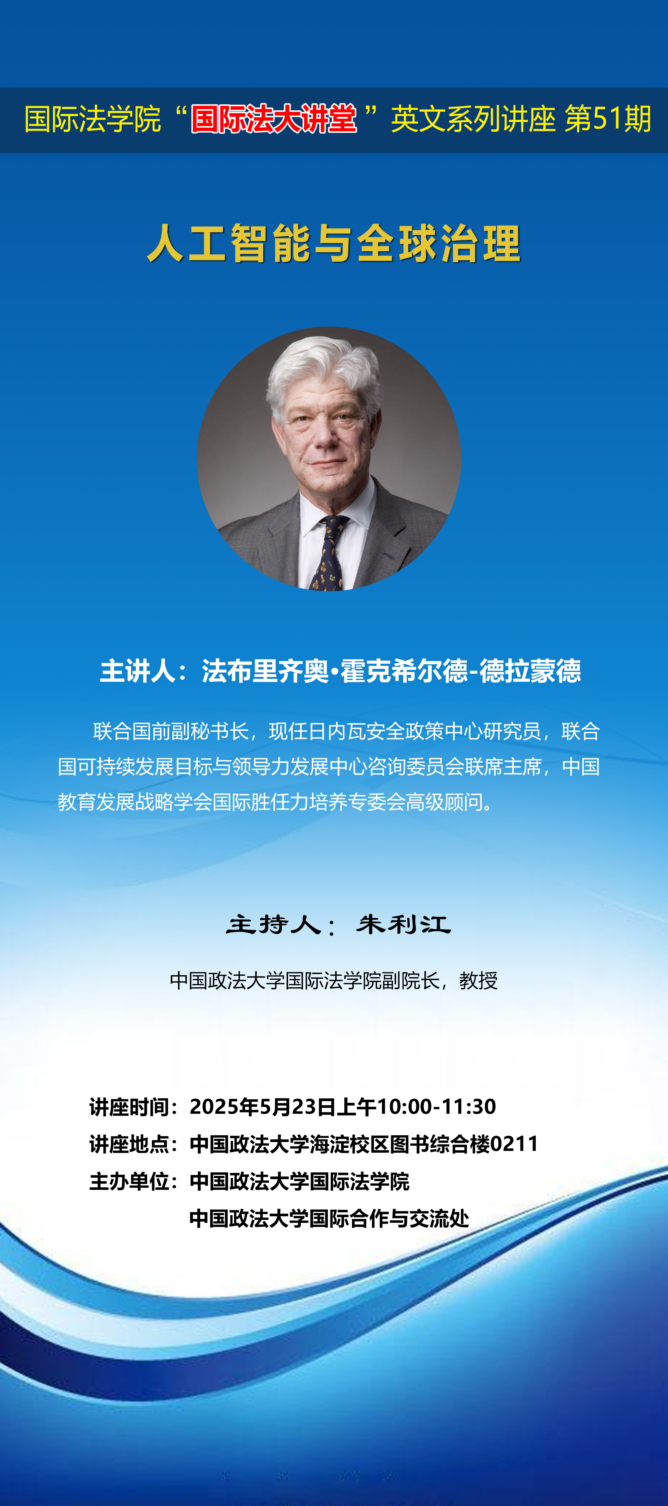 國(guó)際法學(xué)院“國(guó)際大講堂”英文系列講座第51期 人工智能與全球治理